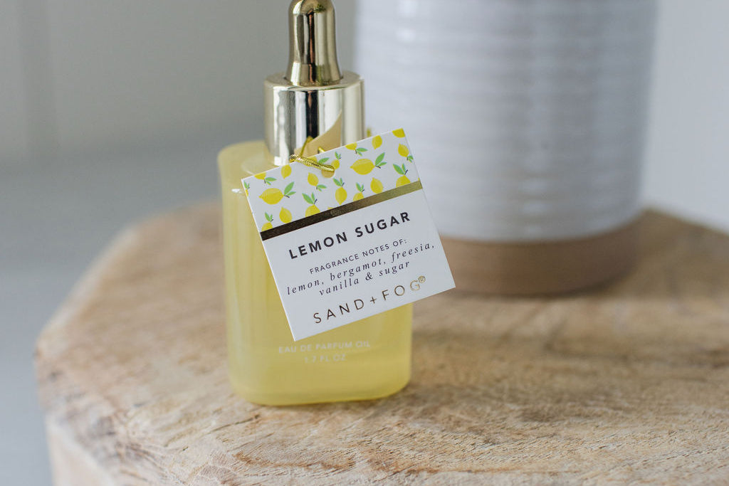 Bright and refreshing, our Lemon Sugar perfume brings a burst of citrus energy with a sweet, delicate finish. This vibrant fragrance combines zesty lemon with a soft, sugary warmth that lingers beautifully on the skin. Perfect for adding a touch of sweetness to your day, it's a scent that feels both playful and elegant. Embrace the light, uplifting notes and indulge in the essence of simple, sunny bliss. Elevate your everyday moments with this luxurious perfume oil, available exclusively from Sand + Fog.